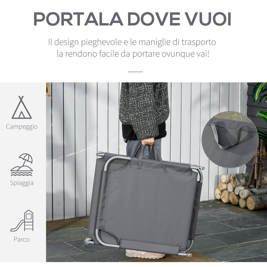 Lettino Prendisole Pieghevole da Giardino 180x55x24 cm in Metallo e Tessuto Oxford Grigio