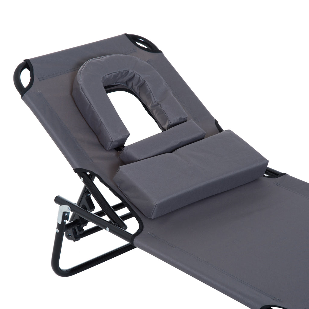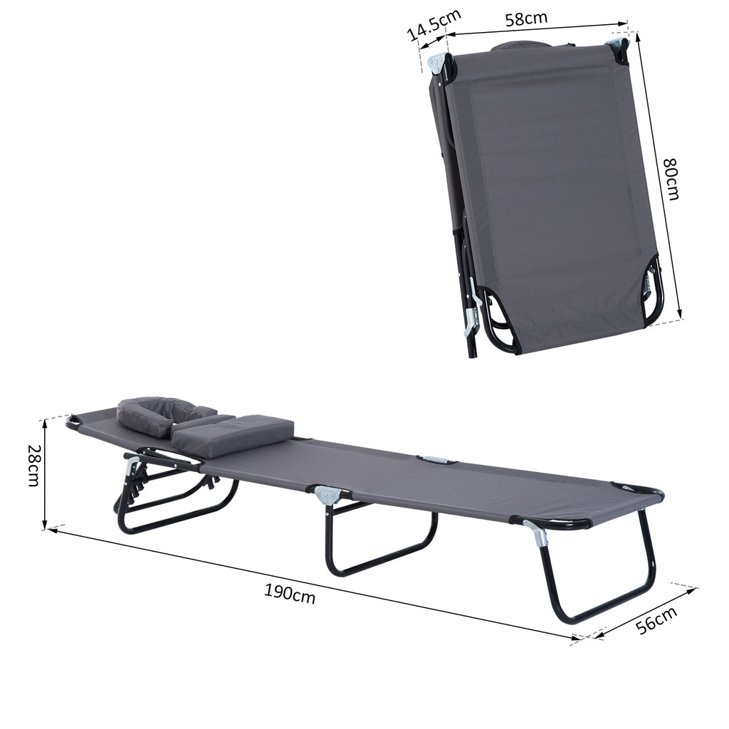 Lettino Prendisole Pieghevole da Giardino in Acciaio e Tessuto 190x56x28 cm Grigio
