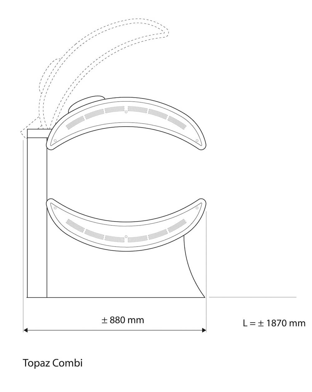 lettino aperto 1870 mm x 880 mm x 1310 mm