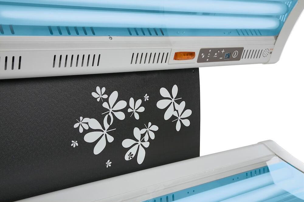 Promette un abbronzatura piacevolmente naturale tutto lanno questo lussuoso lettino solare con intensificatore per il viso ad alta pressione. Il design lineare si accompagna a una dotazione tecnologica di alto livello, con 24 lampade Maxlight e 6 ventilatori di raffreddamento. Il timer digitale permette una programmazione personalizzata di ogni seduta. Con lesclusivo dispositivo di aromaterapia Ambient Scent e il sistema audio Stereo Active per collegamento a lettore di CD o MP3 larte dellabbronzarsi si trasforma in unesperienza di benessere e relax totale.