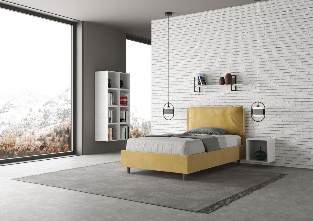 Letto 1 Piazza E Mezzo Imbottito in Microfibra Antea Large Ocra Varie Misure