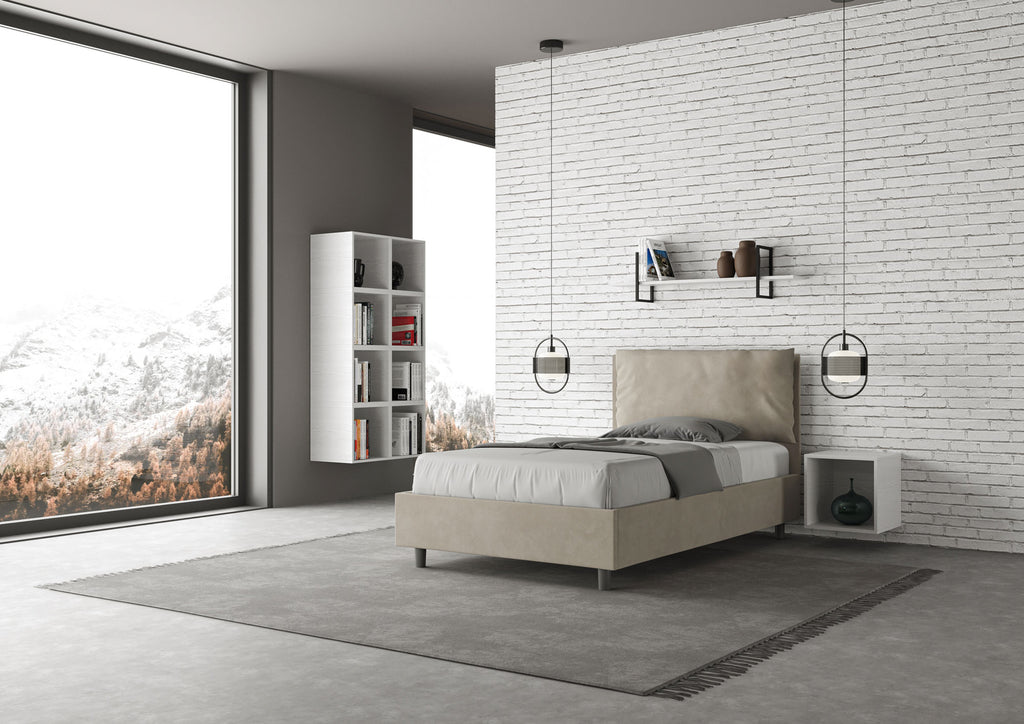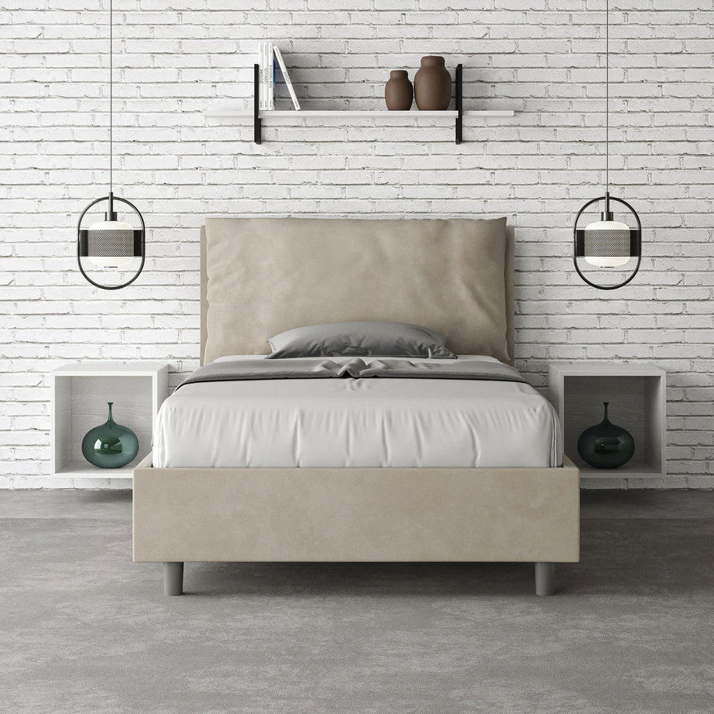Letto 1 Piazza E Mezzo Imbottito in Microfibra Antea Large Sabbia Varie Misure