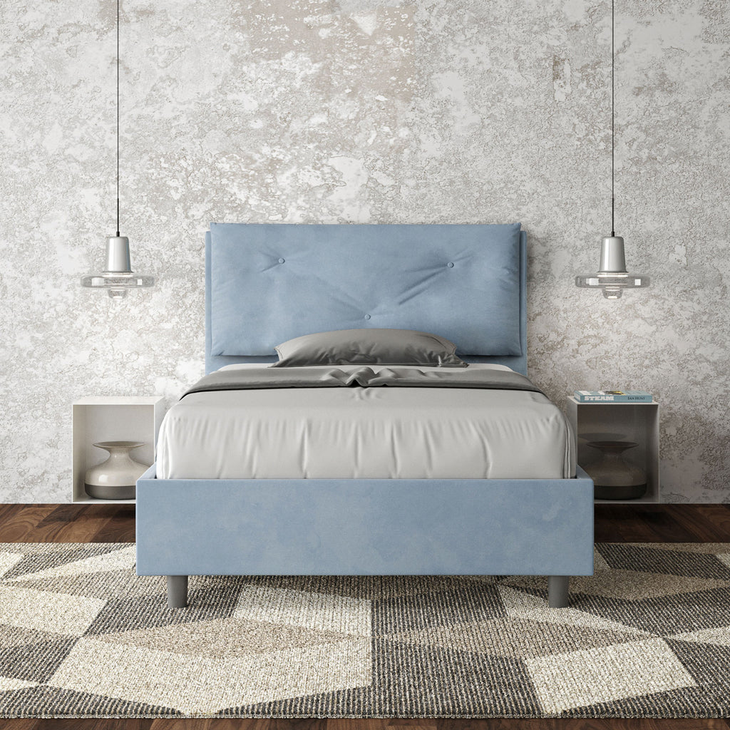 Letto 1 Piazza E Mezzo Imbottito in Microfibra Appia Large Azzurro Varie Misure