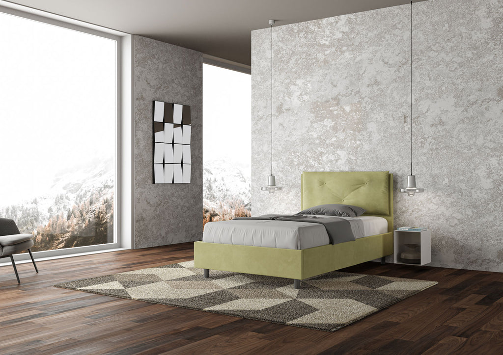 Letto 1 Piazza E Mezzo Imbottito in Microfibra Appia Large Tè Verde Varie Misure