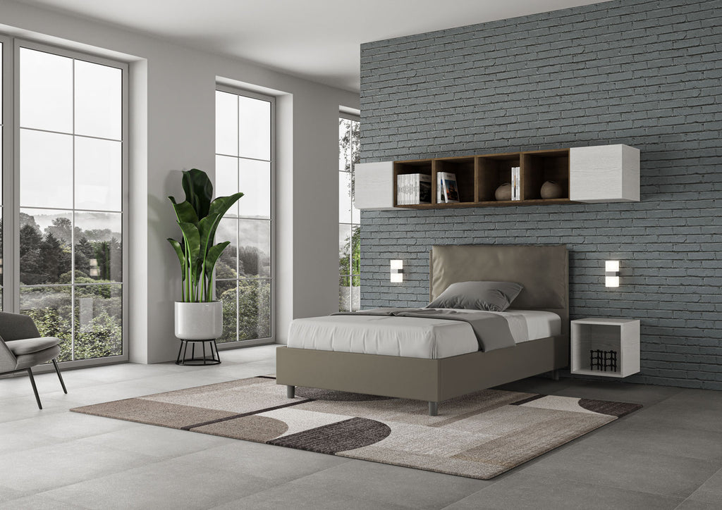 Letto 1 Piazza E Mezzo Imbottito in Similpelle Antea Large Cappuccino Varie Misure