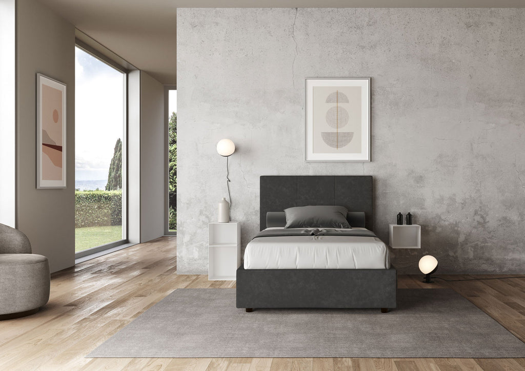 Letto 1 Piazza e Mezzo 120x210 cm con Rete Mika Grigio