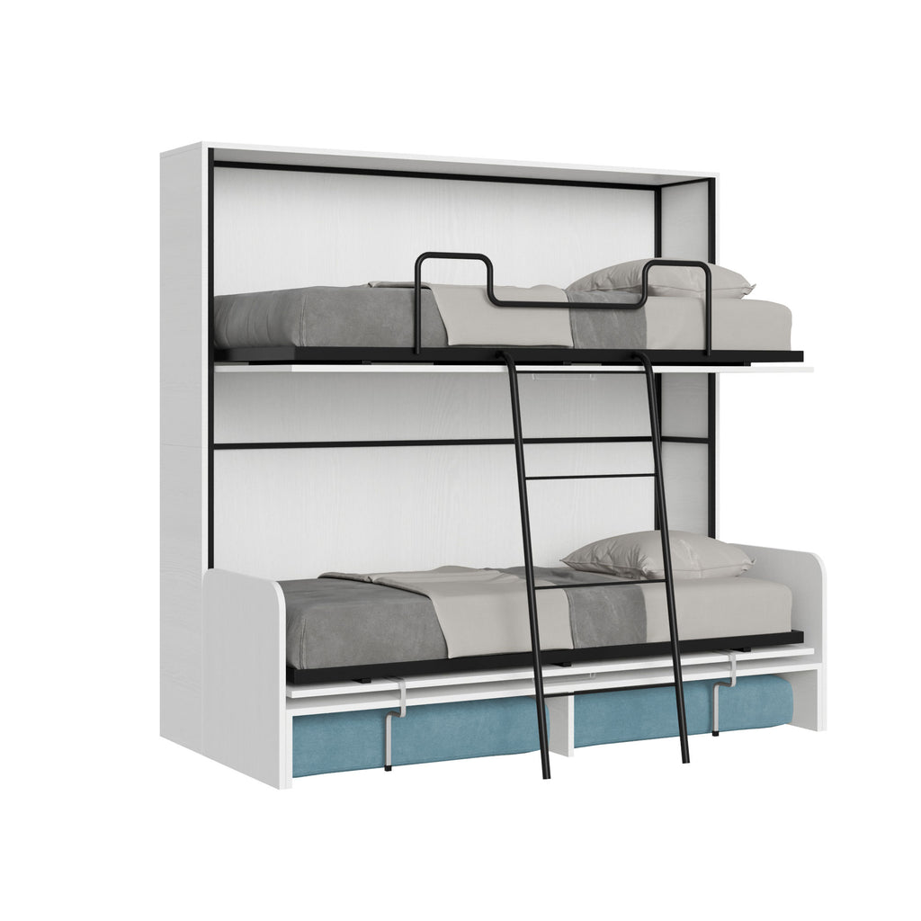 Letto Doppio A Scomparsa Kando Con Divano Bianco Frassino e Azzurro