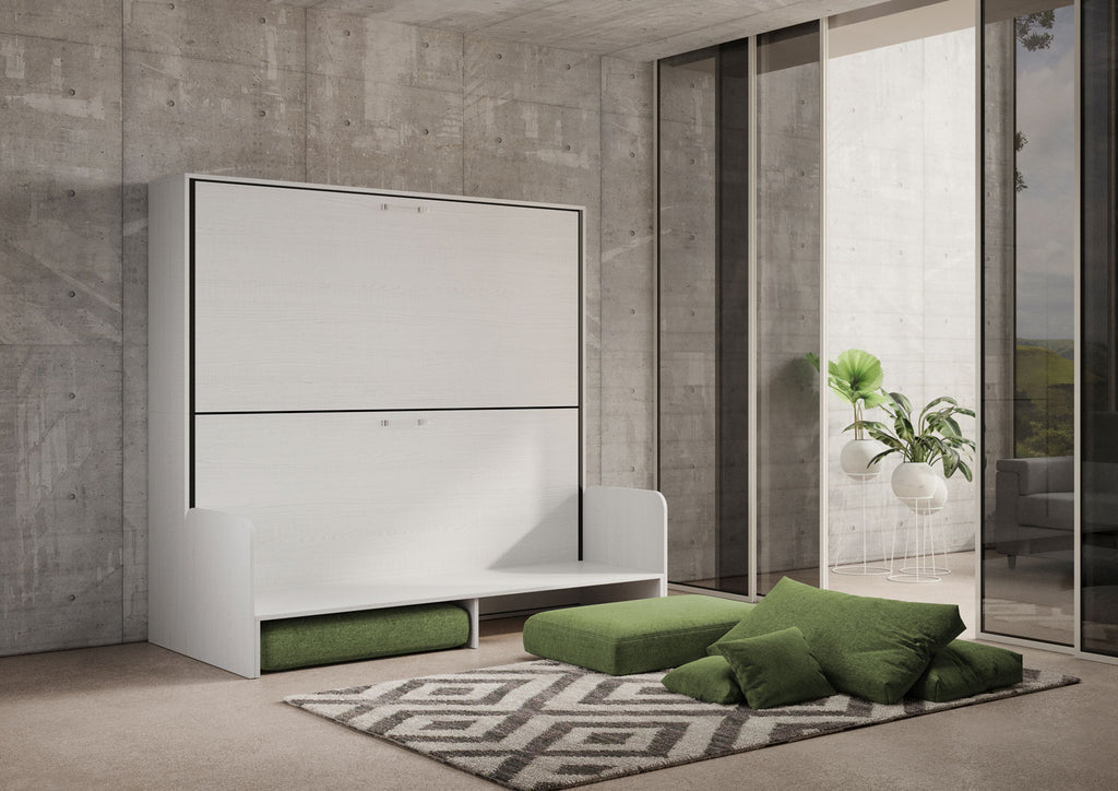 Letto Doppio A Scomparsa Kando Con Divano Bianco Frassino e Verde