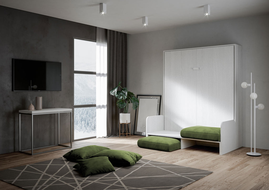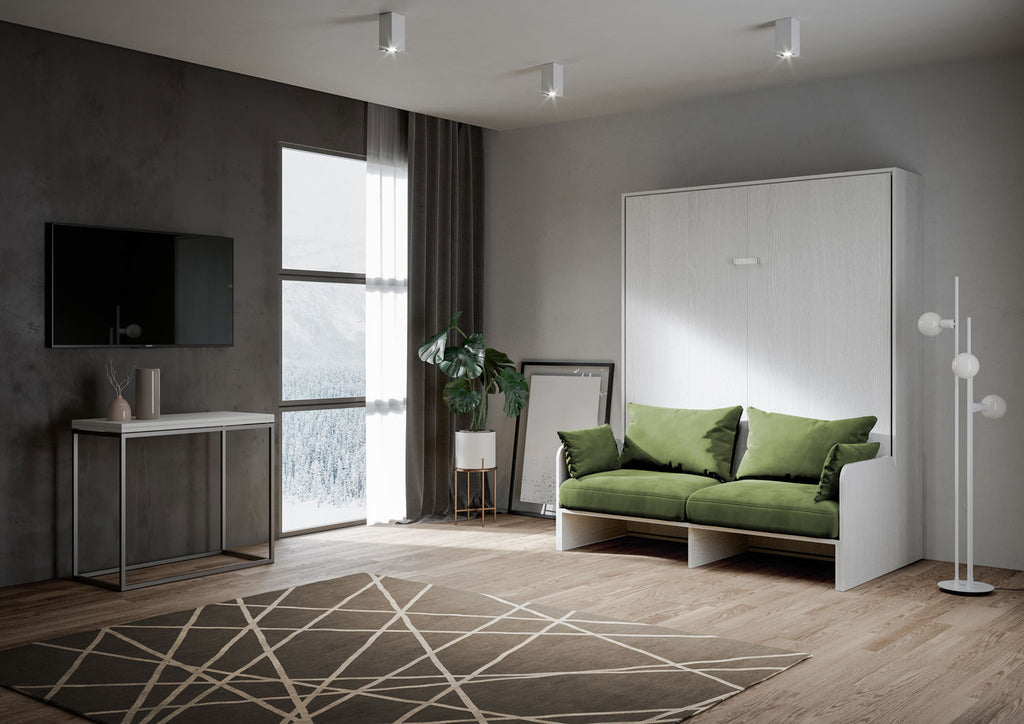 Letto Matrimoniale A Scomparsa 160 Kentaro Con Divano Bianco Frassino e Verde