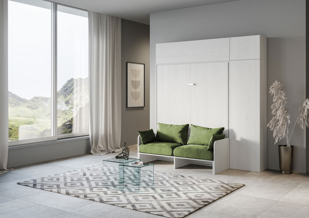 Letto Matrimoniale A Scomparsa 160 Kentaro Con Divano E Mobili Bianco Frassino e Verde