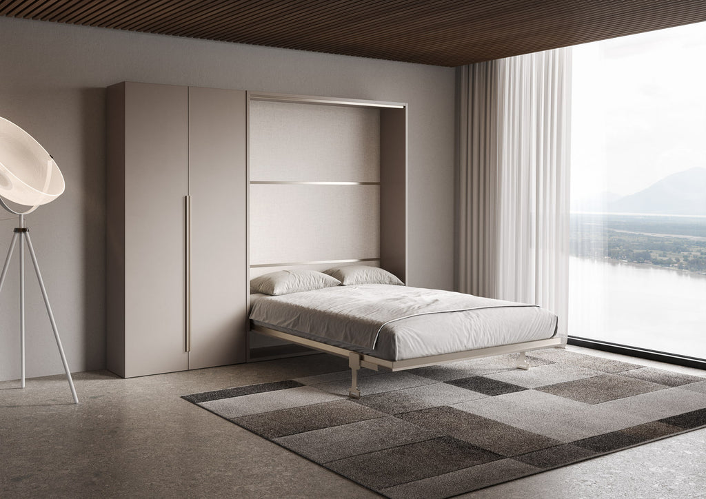 Letto Matrimoniale A Scomparsa 160 Versia Con Armadio Sx 2 Ante Argilla