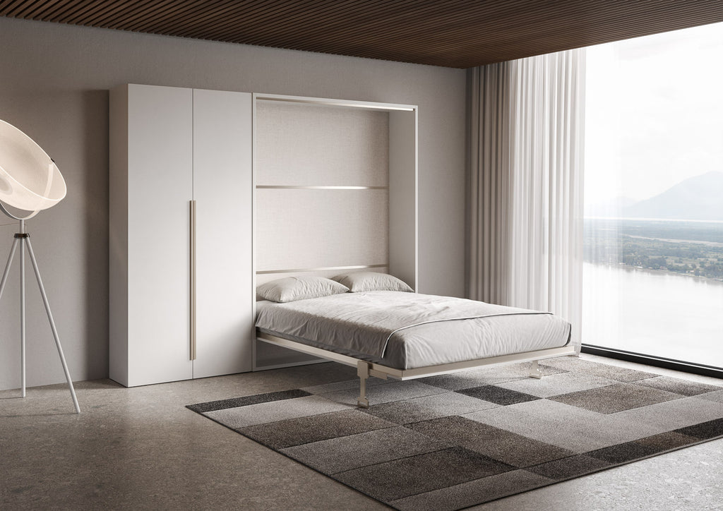 Letto Matrimoniale A Scomparsa 160 Versia Con Armadio Sx 2 Ante Bianco