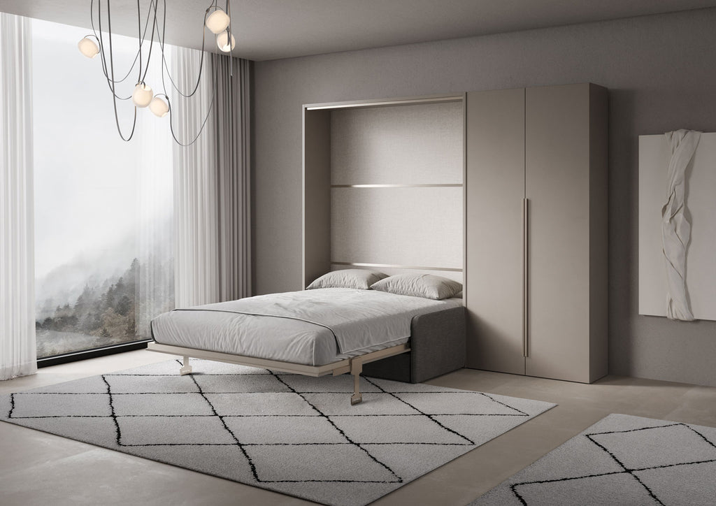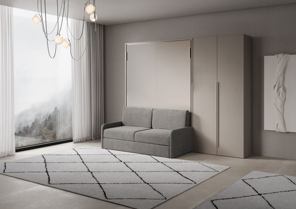 Letto Matrimoniale A Scomparsa 160 Versia Con Divano E Armadio Dx 2 Ante Argilla