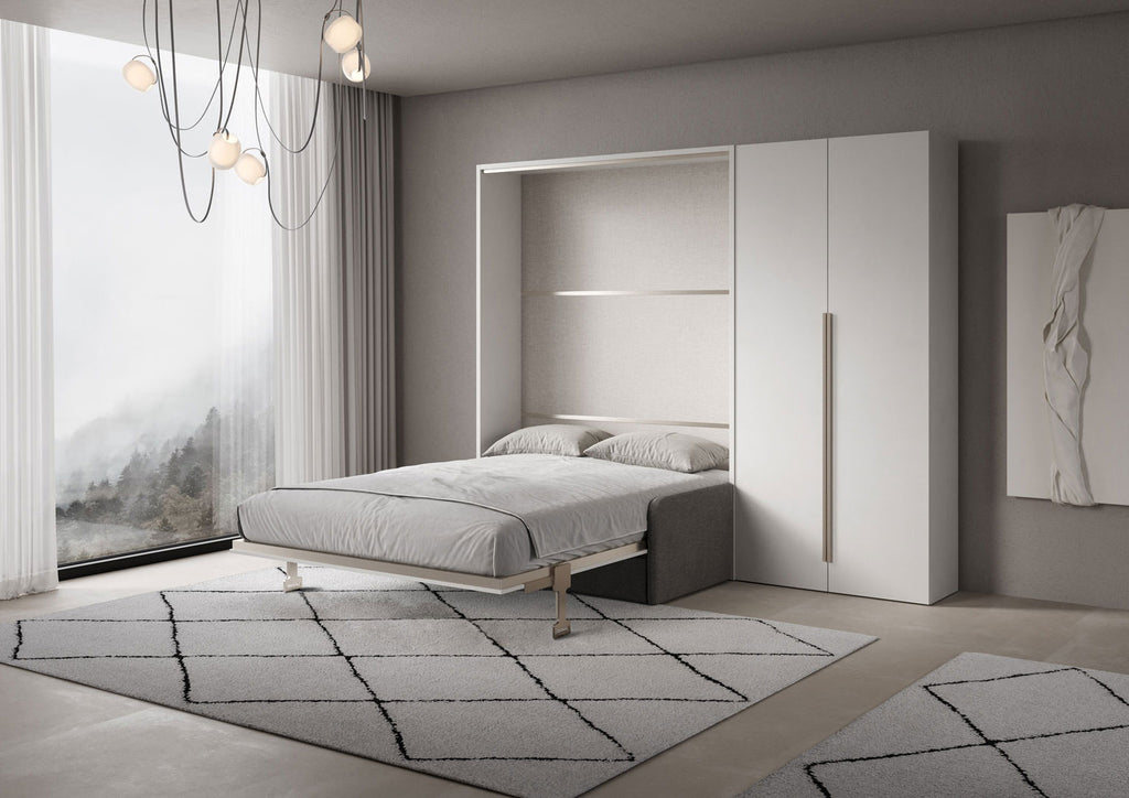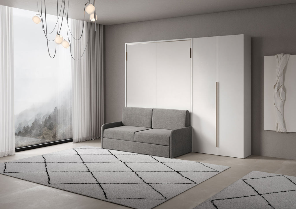 Letto Matrimoniale A Scomparsa 160 Versia Con Divano E Armadio Dx 2 Ante Bianco