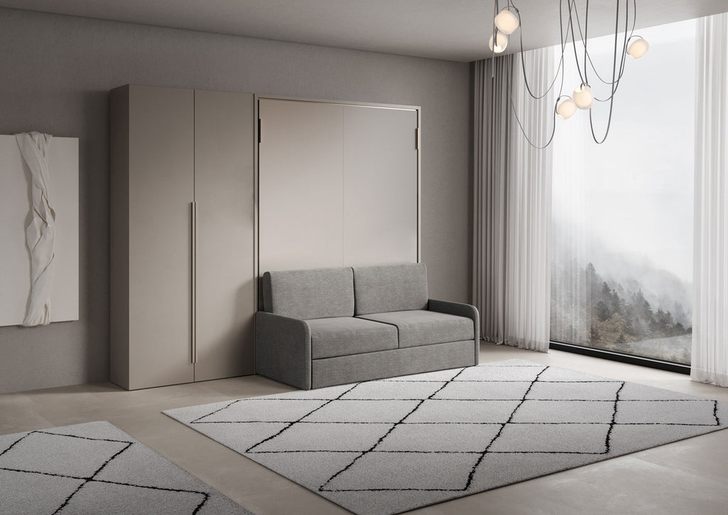 Letto Matrimoniale A Scomparsa 160 Versia Con Divano E Armadio Sx 2 Ante Argilla