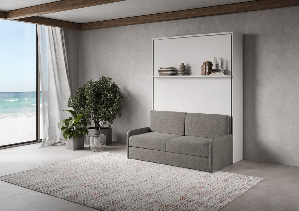 Letto Matrimoniale A Scomparsa 160 Versia Con Divano E Mensola Bianco