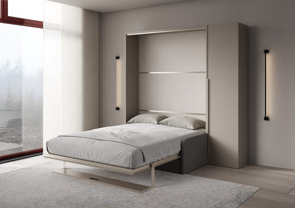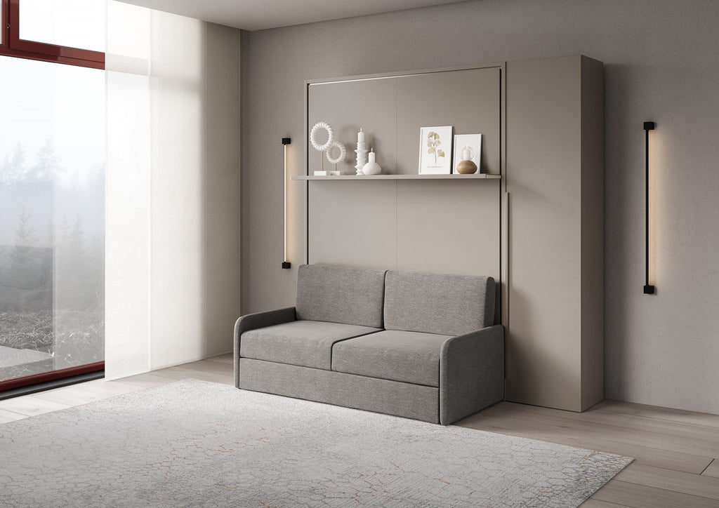 Letto Matrimoniale A Scomparsa 160 Versia Con Divano Mensola E Armadio 1 Anta Dx Argilla