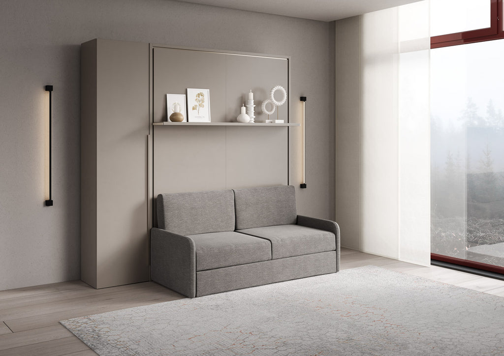 Letto Matrimoniale A Scomparsa 160 Versia Con Divano Mensola E Armadio 1 Anta Sx Argilla