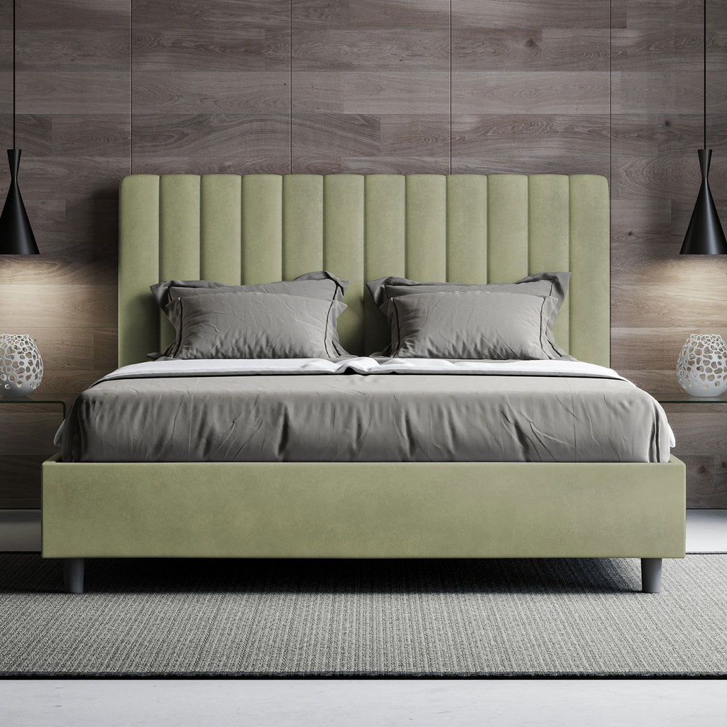 Letto Matrimoniale con Alzata Comoda Imbottito in Microfibra Agueda Tè Verde Varie Misure