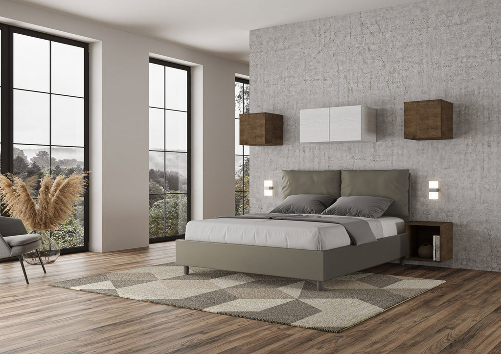 Letto matrimoniale in varie misure Antea con testata e Letto imbottiti, rivestimento in similpelle, particolarmente versatile e facilmente abbinabile a qualsiasi stile di arredamento. Il letto matrimoniale Antea è caratterizzato da uno stile elegante e raffinato grazie all'ampia cuscinatura presente sulla testata, è interamente rivestito in similpelle. La presenza del materiale in similpelle, oltre a donare alla stanza un'atmosfera accogliente ed invitante, offre la comodità di una pulizia facile e veloce, grazie all'utilizzo di un semplice panno in microfibra. Letto fornito con rete contenitore con doppia alzata. Rivestimento cuscini sfoderabile.