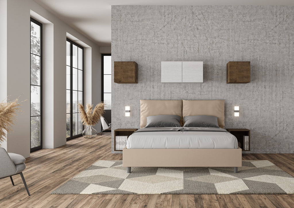 Letto matrimoniale in varie misure Antea con testata e Letto imbottiti, rivestimento in similpelle, particolarmente versatile e facilmente abbinabile a qualsiasi stile di arredamento. Il letto matrimoniale Antea è caratterizzato da uno stile elegante e raffinato grazie all'ampia cuscinatura presente sulla testata, è interamente rivestito in similpelle. La presenza del materiale in similpelle, oltre a donare alla stanza un'atmosfera accogliente ed invitante, offre la comodità di una pulizia facile e veloce, grazie all'utilizzo di un semplice panno in microfibra. Letto fornito con rete contenitore con doppia alzata. Rivestimento cuscini sfoderabile.
