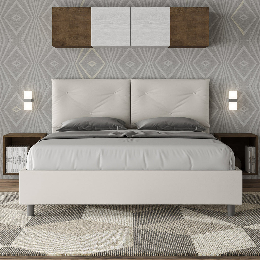 Letto Matrimoniale con Alzata Comoda Imbottito in Similpelle Appia Bianco Varie Misure