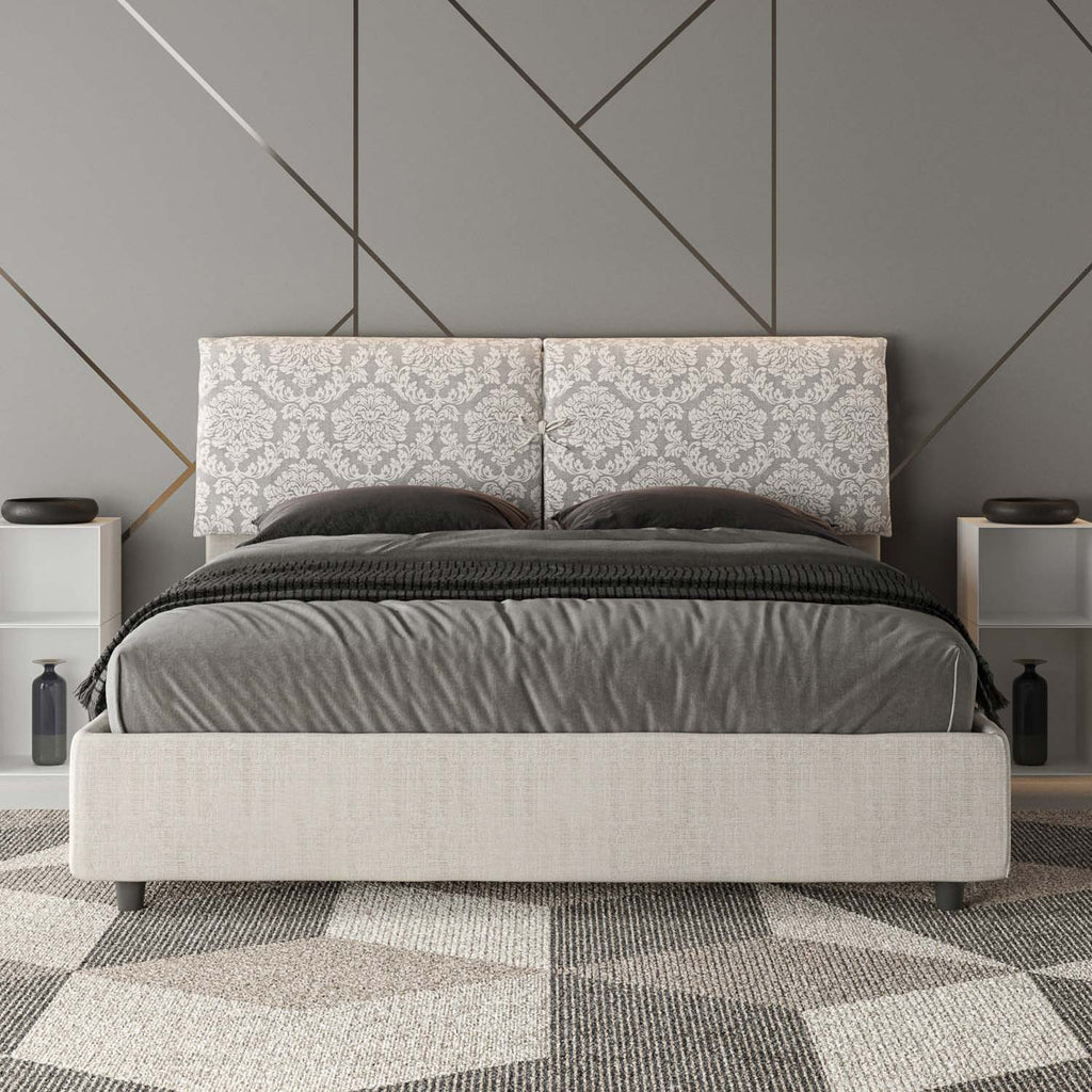 Letto matrimoniale in varie misure Mados con testata e Letto imbottiti, rivestimento in tessuto, particolarmente versatile e facilmente abbinabile a qualsiasi stile di arredamento. Il letto matrimoniale Mados è caratterizzato da uno stile elegante e raffinato grazie all'ampia cuscinatura presente sulla testata, è interamente rivestito in tessuto. Un letto che darà un tocco di eleganza alla tua zona notte, senza passare inosservato, grazie alle caratteristiche distintive del suo rivestimento in tessuto. Letto fornito con rete contenitore con doppia alzata. Rivestimento letto completamente sfoderabile.