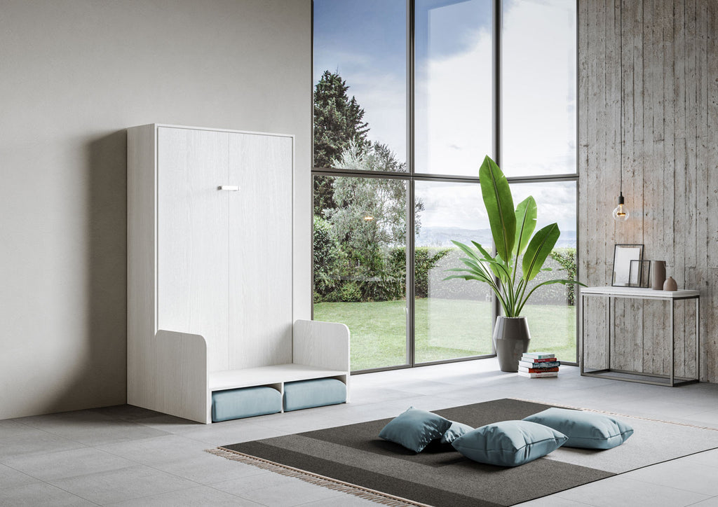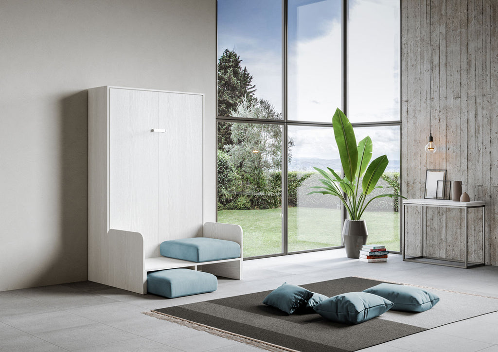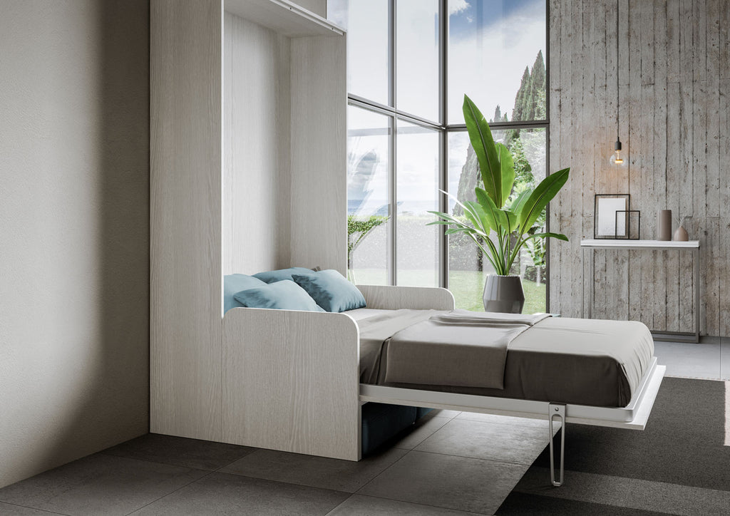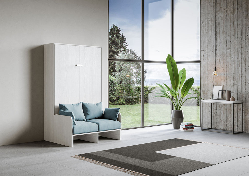 Letto Matrimoniale Francese A Scomparsa 140 Kentaro Con Divano Bianco Frassino e Azzurro