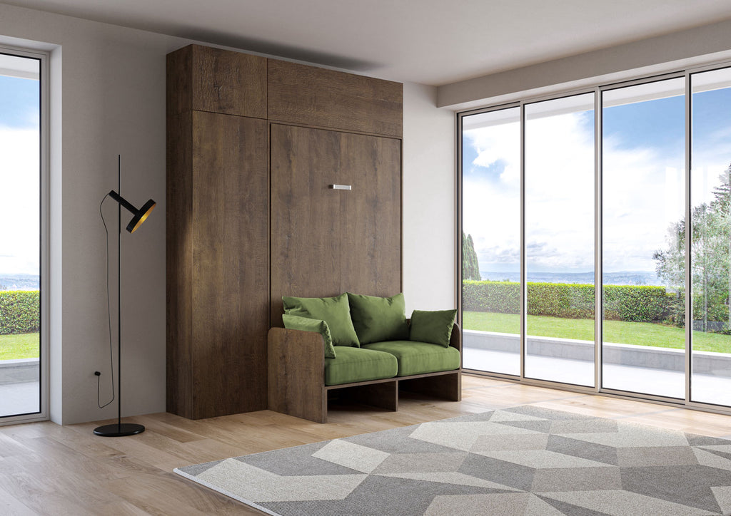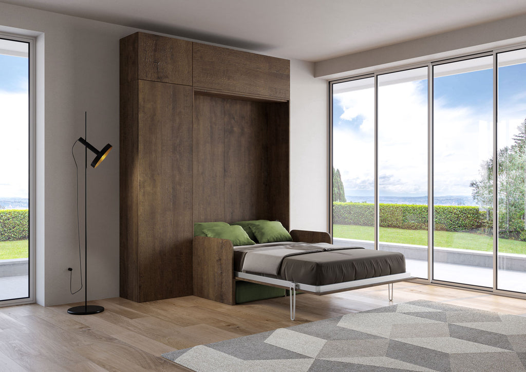 Letto Matrimoniale Francese A Scomparsa 140 Kentaro Con Divano E Mobili Noce e Verde