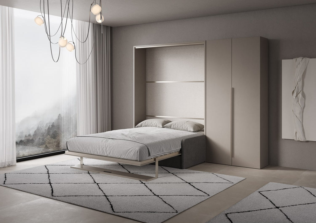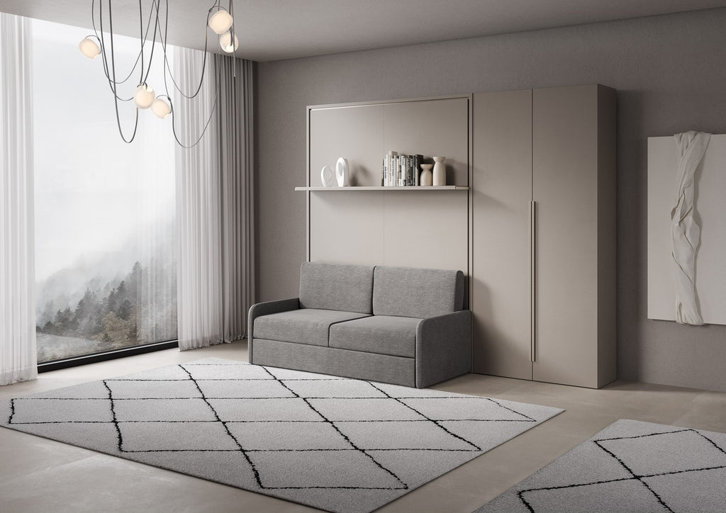 Letto Matrimoniale Francese A Scomparsa 140 Versia Con Divano Mensola E Armadio Dx 2 Ante Argilla