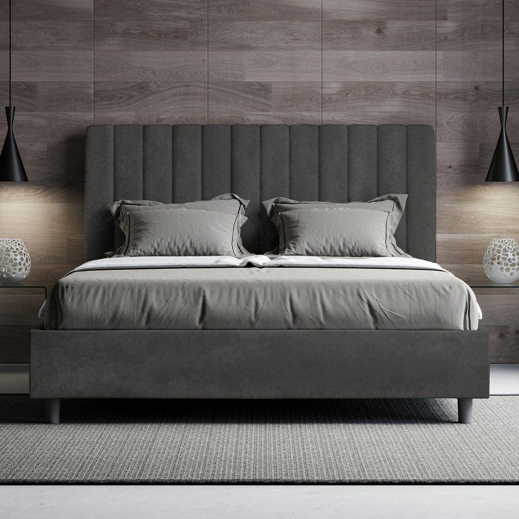 Letto Matrimoniale Francese 140x190 cm con Rete e Contenitore Agueda Grigio