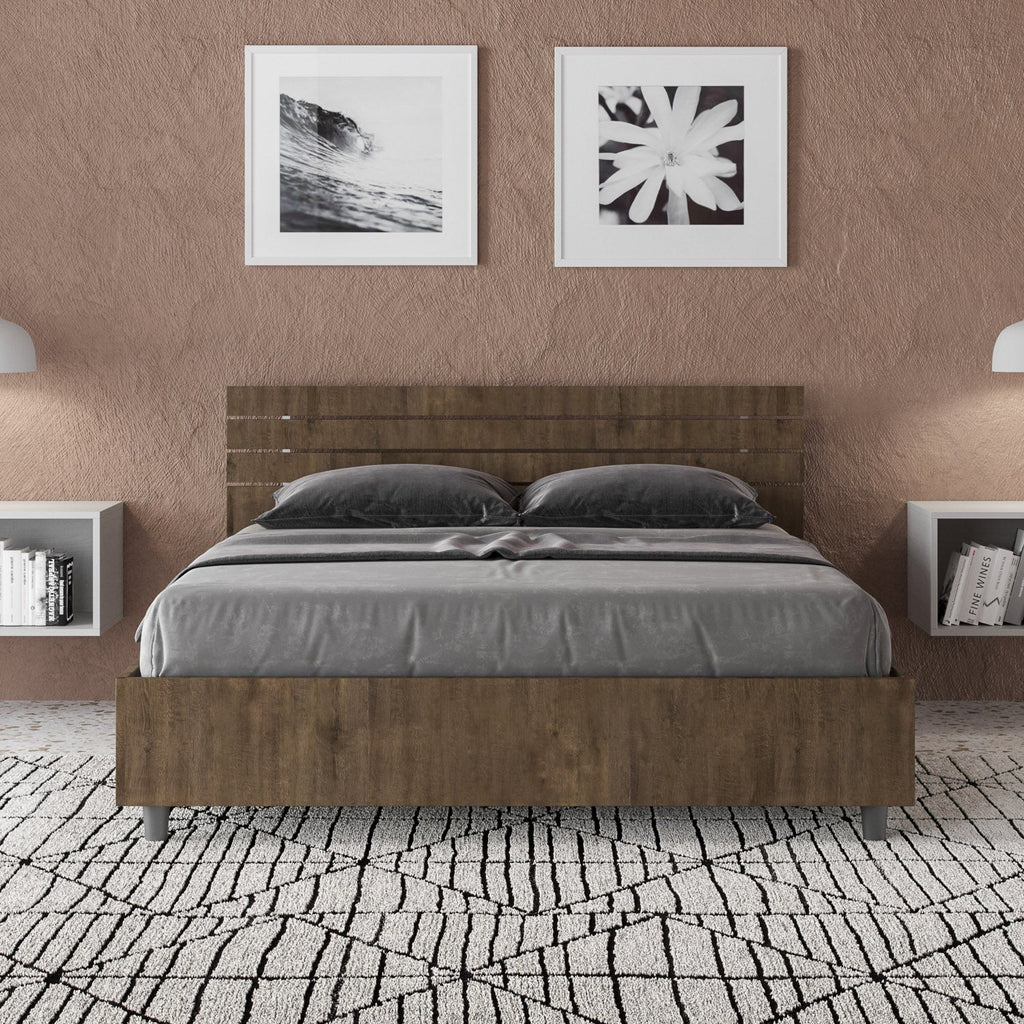 Letto Matrimoniale Francese 140x190 cm con Rete e Contenitore Ankel Testata Doghe Inclinata Noce