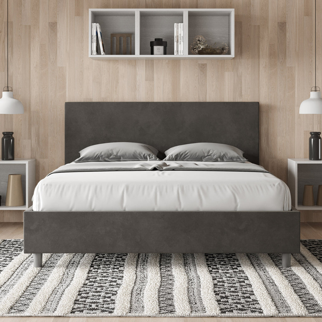 Letto Matrimoniale Giroletto con Alzata Comoda Imbottito in Microfibra Adele Grigio Varie Misure