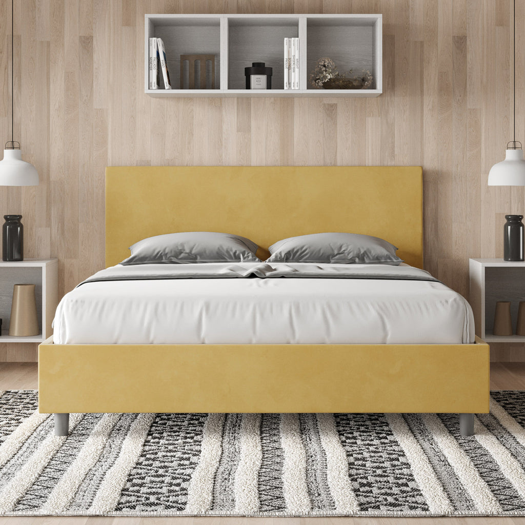 Letto Matrimoniale Giroletto con Alzata Comoda Imbottito in Microfibra Adele Ocra Varie Misure