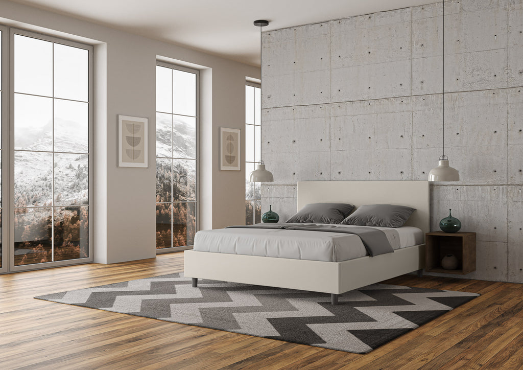 Letto matrimoniale in varie misure Adele con testata e Letto imbottiti, rivestimento in similpelle, particolarmente versatile e facilmente abbinabile a qualsiasi stile di arredamento. Il letto matrimoniale Adele è caratterizzato da uno stile semplice e raffinato, evidenziato dalla superficie della testata liscia rivestita in similpelle. La presenza del materiale in similpelle, oltre a donare alla stanza un'atmosfera accogliente ed invitante, offre la comodità di una pulizia facile e veloce, grazie all'utilizzo di un semplice panno in microfibra. Letto fornito con rete contenitore con doppia alzata. Rivestimento letto non sfoderabile.