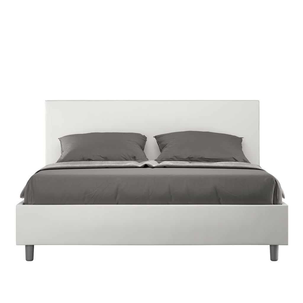Letto Matrimoniale Giroletto con Alzata Comoda Imbottito in Similpelle Adele Bianco Varie Misure