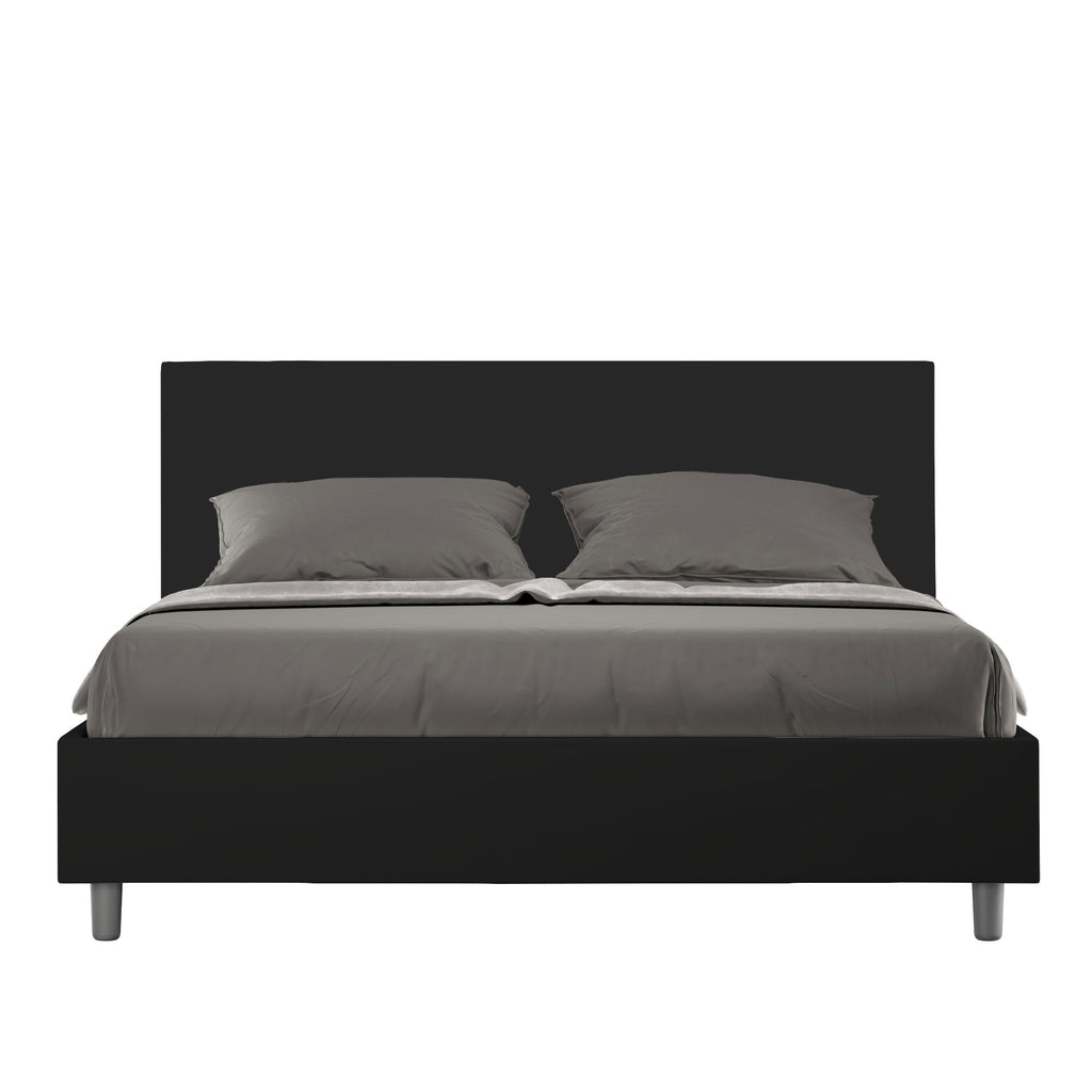 Letto Matrimoniale Giroletto con Alzata Comoda Imbottito in Similpelle Adele Nero Varie Misure