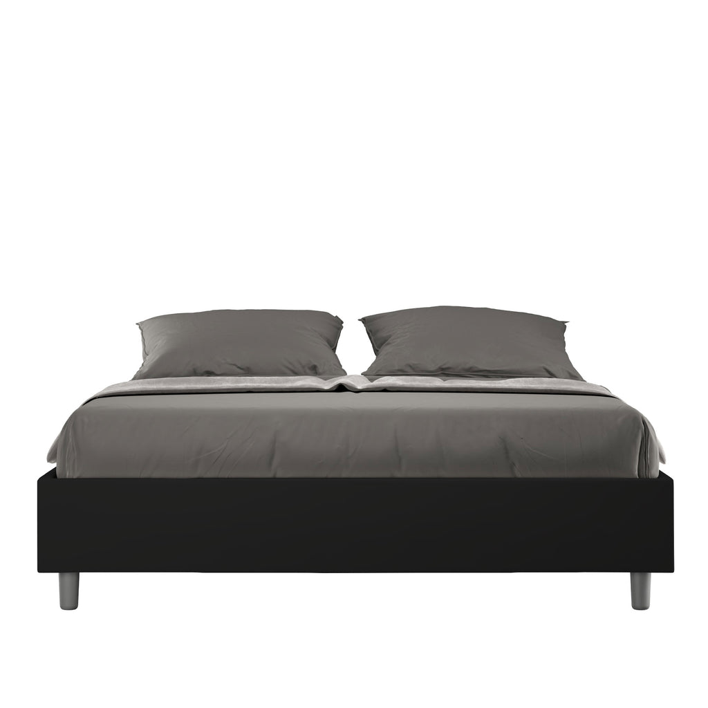 Letto Matrimoniale Giroletto con Alzata Comoda Imbottito in Similpelle Azelia Nero Varie Misure