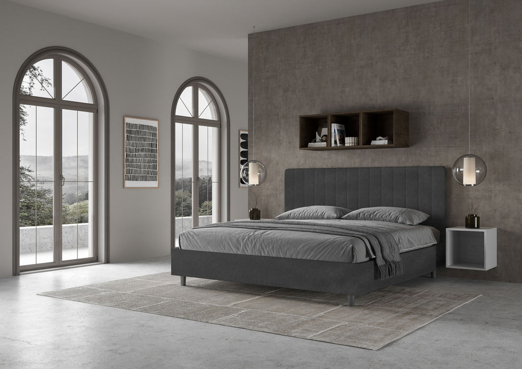 Letto Matrimoniale Imbottito in Microfibra Agueda Grigio Varie Misure