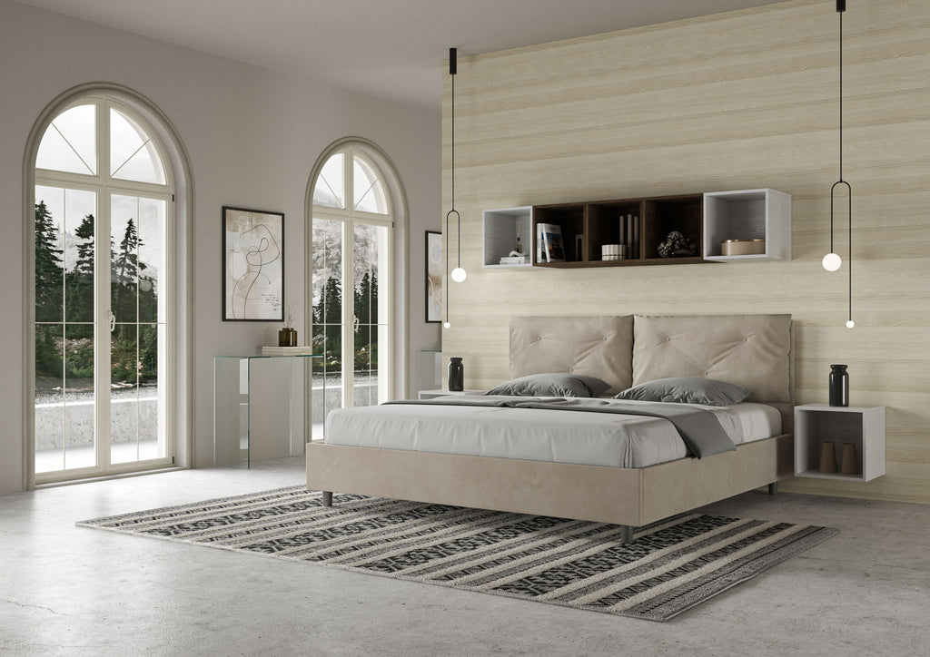 Letto matrimoniale in varie misure Appia Large con testata e giroletto imbottiti, rivestimento in microfibra, particolarmente versatile e facilmente abbinabile a qualsiasi stile di arredamento. Il letto matrimoniale Appia Large è caratterizzato da uno stile elegante e raffinato grazie all'ampia cuscinatura presente sulla testata, è interamente rivestito in microfibra. Un letto che darà un tocco di eleganza alla tua zona notte, senza passare inosservato, grazie alle caratteristiche distintive del suo rivestimento in microfibra. Rivestimento letto completamente sfoderabile.