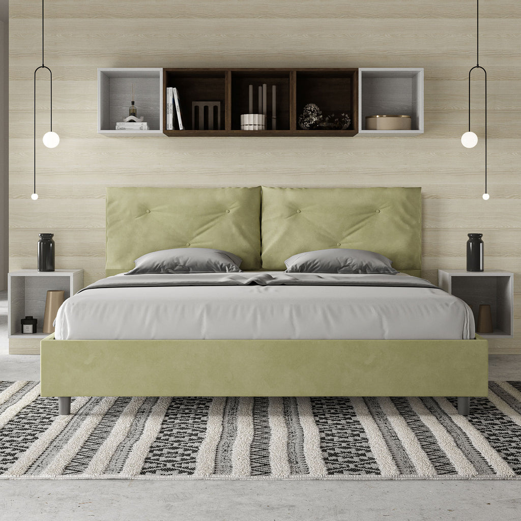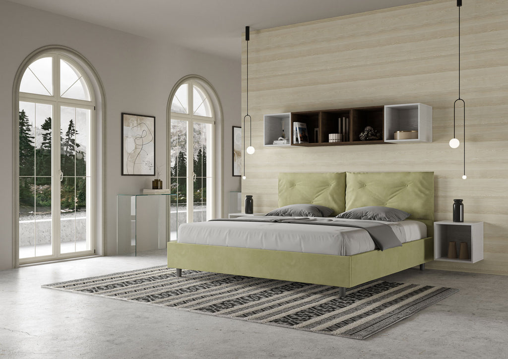 Letto Matrimoniale Imbottito in Microfibra Appia Large Tè Verde Varie Misure
