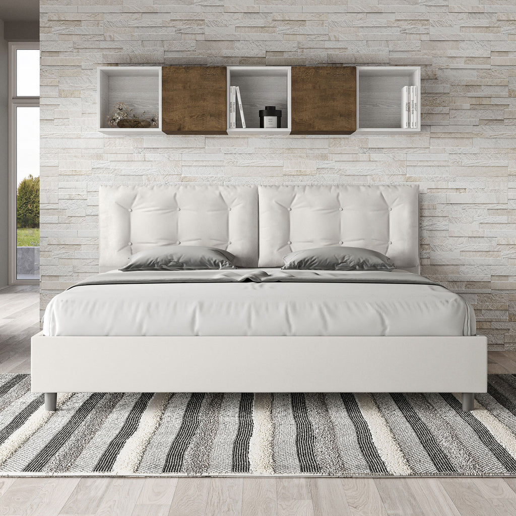 Letto Matrimoniale Imbottito in Similpelle Annalisa Large Bianco Varie Misure