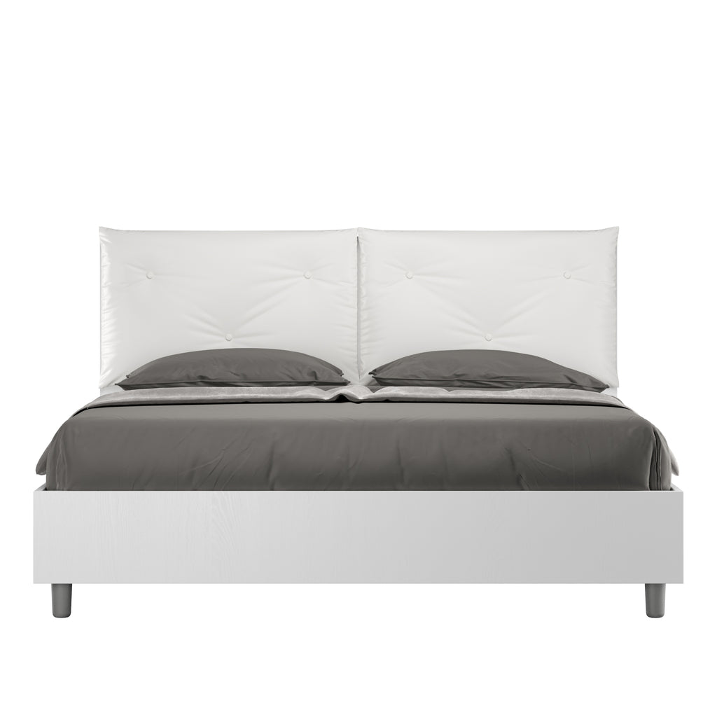 Letto Matrimoniale Struttura Bianco Frassico con Cuscini in Similpelle Egos Appia Bianco Varie Misure