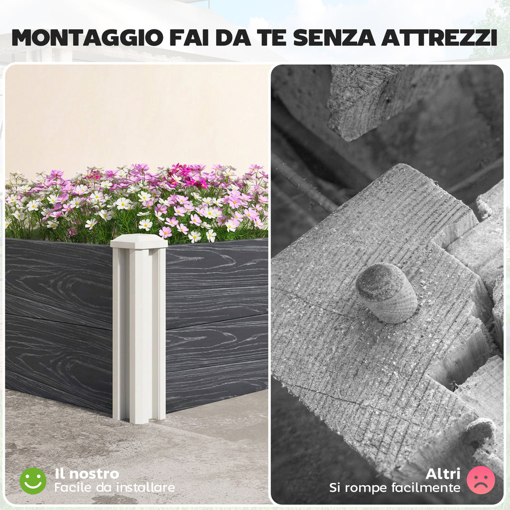 Crea un giardino facile e gratificante. Il letto rialzato offre montaggio senza attrezzi, struttura robusta in vinile e fondo aperto per risolvere problemi comuni: montaggio complesso, scarso drenaggio e breve durata. I pannelli resistenti alle intemperie non arrugginiscono, marciscono o sbiadiscono, garantendo un'aiuola pulita e attraente nel tempo.