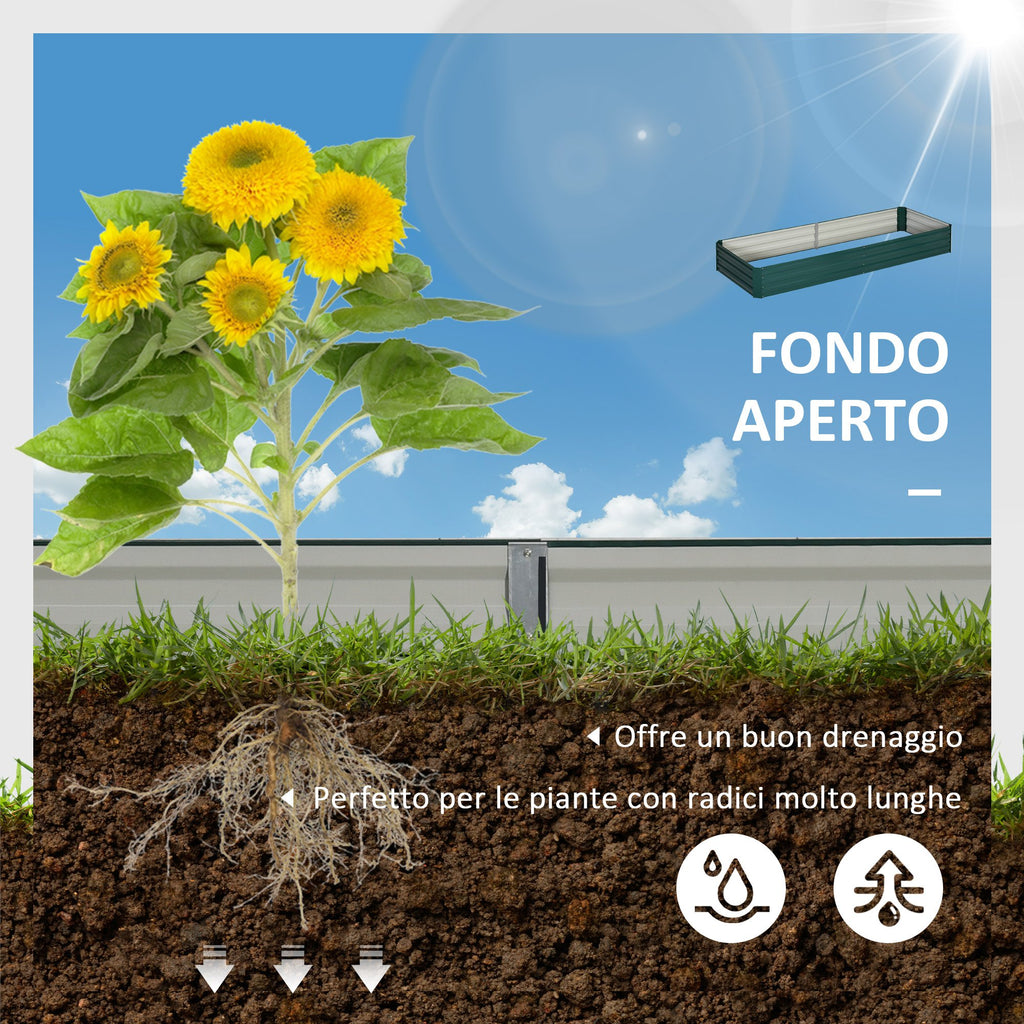 Letto per Orto Fioriera Rialzato 241x90,5x30 cm in Meallo Verde