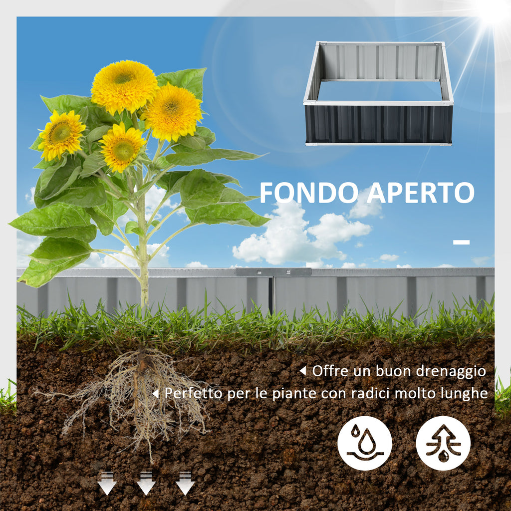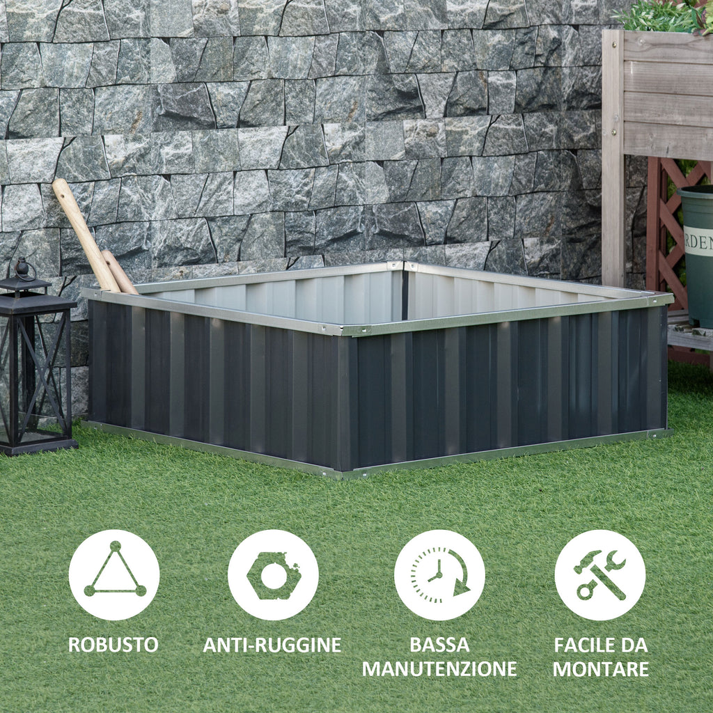 Letto per Orto Fioriera Rialzato 90x90x30 cm in Acciaio Grigio Scuro