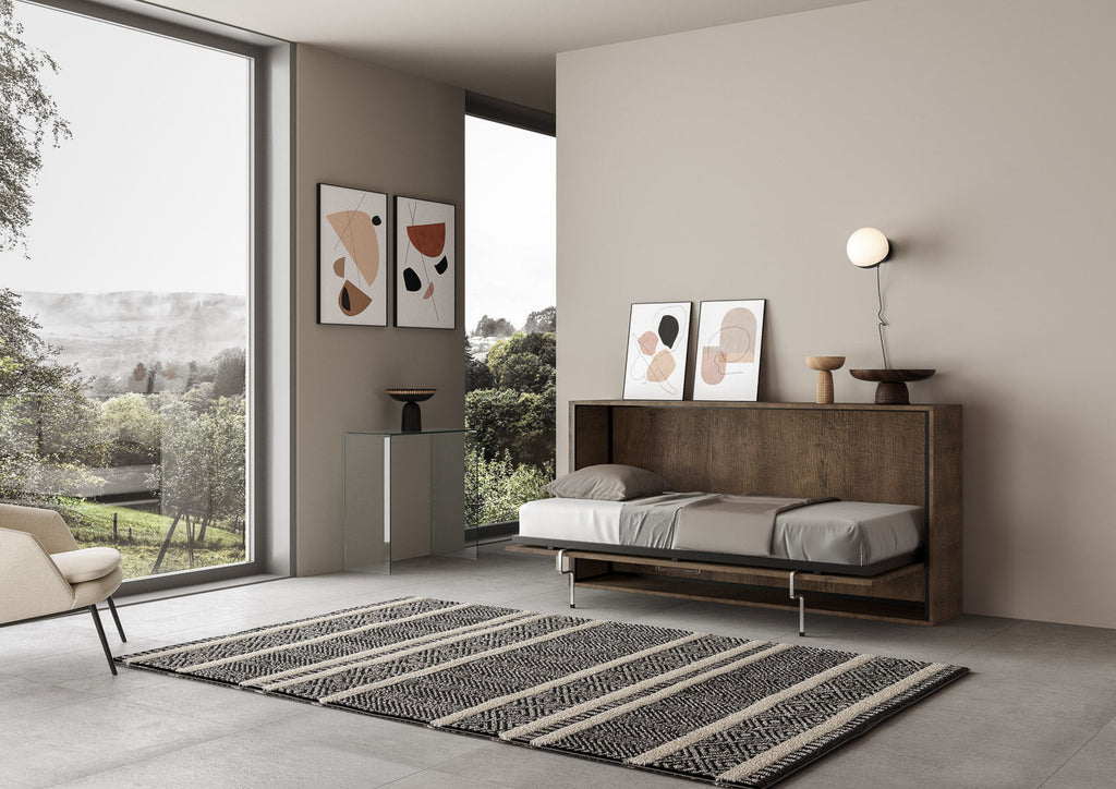 Letto Singolo a Scomparsa Salvaspazio Orizzontale Kando H97 cm Marrone