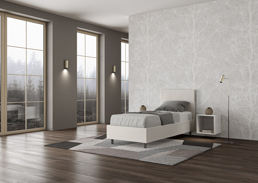 Letto singolo modello Adele con giroletto imbottito. Il modello Adele si presta da portavoce per uno stile semplice e raffinato. La superficie della testata liscia in similpelle vi consentirà di collocarlo facilmente in qualsiasi ambiente, arredandolo con un tocco di classe e qualità del tutto italiana. Anche la pulizia del materiale, di cui è interamente rivestito, è estremamente semplice, in quanto vi basterà passare un panno in microfibra per mantenere il suo fascino nel corso degli anni. Letto fornito con rete a doghe, predisposto per materasso L.80 P.210
