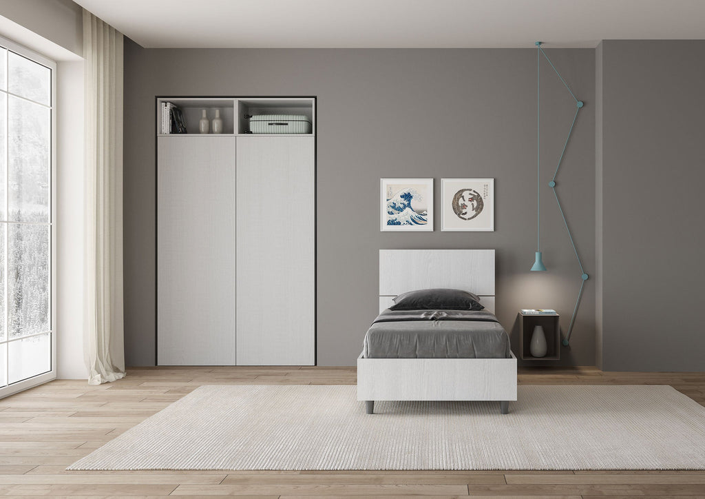 Letto Singolo 80x200 cm con Rete Testata Inclinata Demas Bianco Frassino