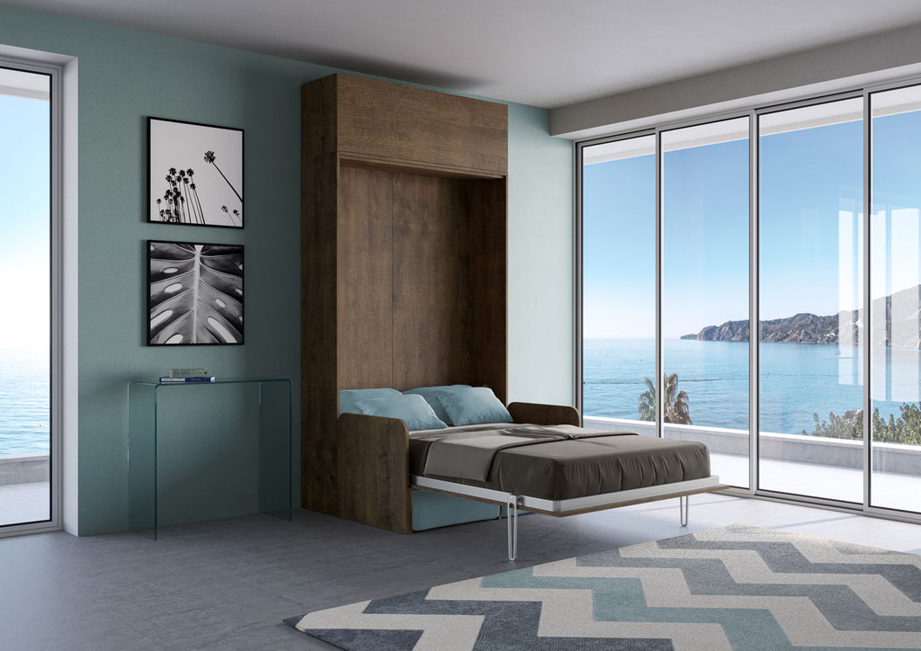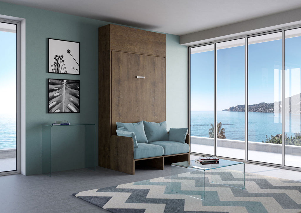 Letto Una Piazza E Mezzo A Scomparsa 120 Kentaro Con Divano E Pensile Noce e Azzurro